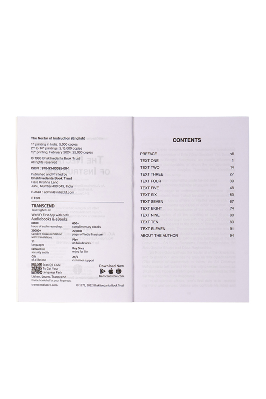 From the preliminary stages of spiritual life to the topmost nectarean mellows of love of God; this book guides the reader along the path of devotion. Instruction is nectar when it melts your heart, lights your path, and bring tears of love for God to your eyes. Let this nectar pour forth into your being. These eleven short verses give essential instructions on how to clean your heart and prepare it for loving devotion to Krishna.